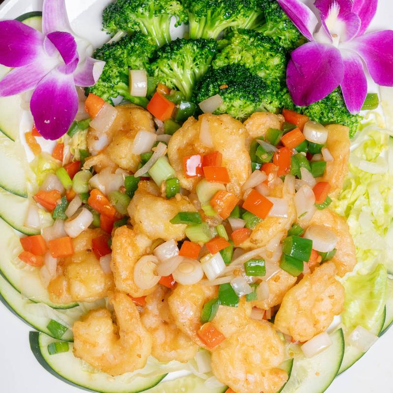 Served with chicken noodle soup, house salad, steamed rice, 2 pieces of shrimp appetizer, and assorted vegetables | Add Fried Rice +$2.50